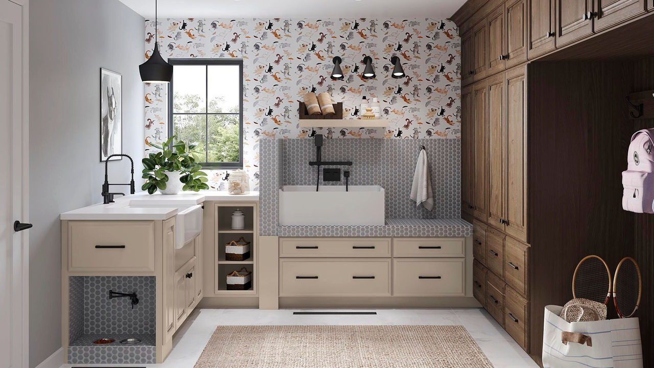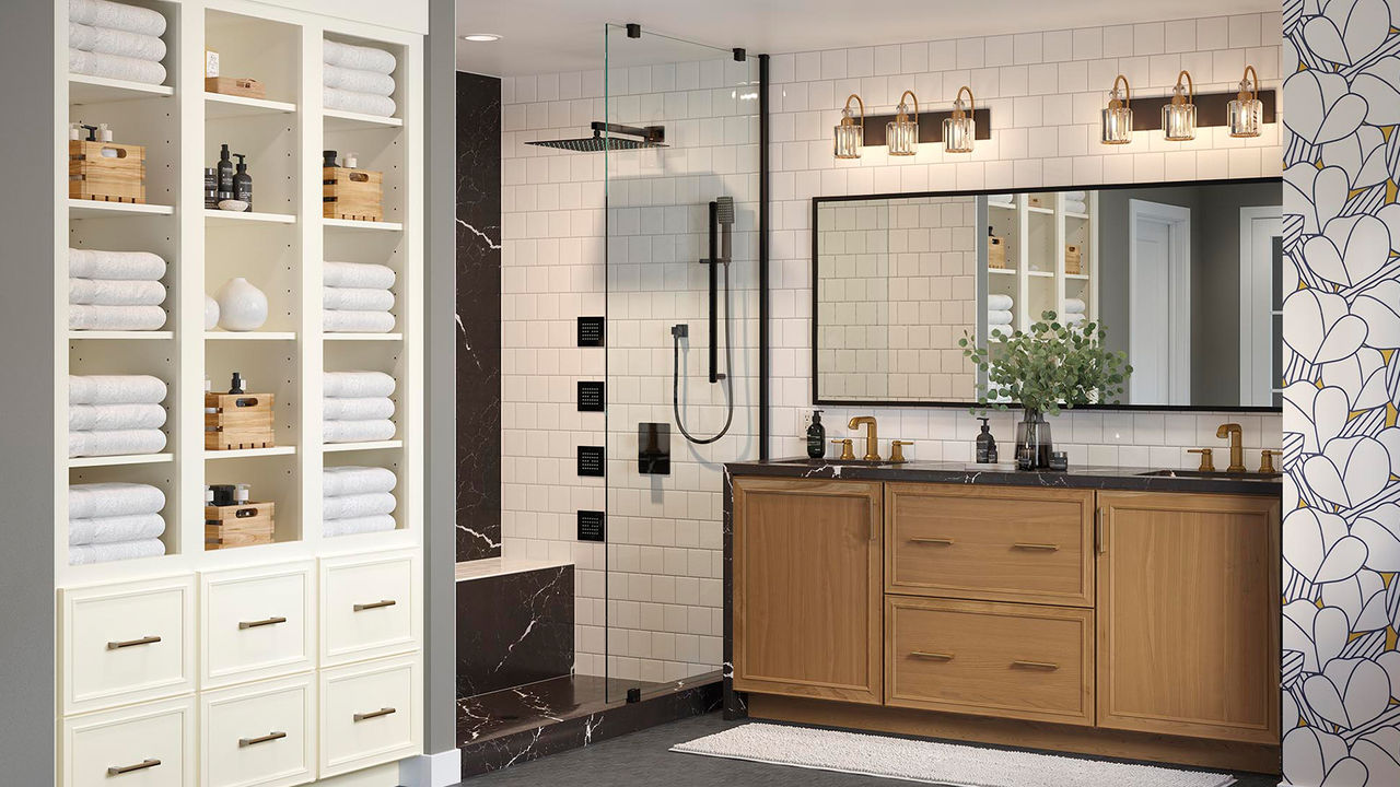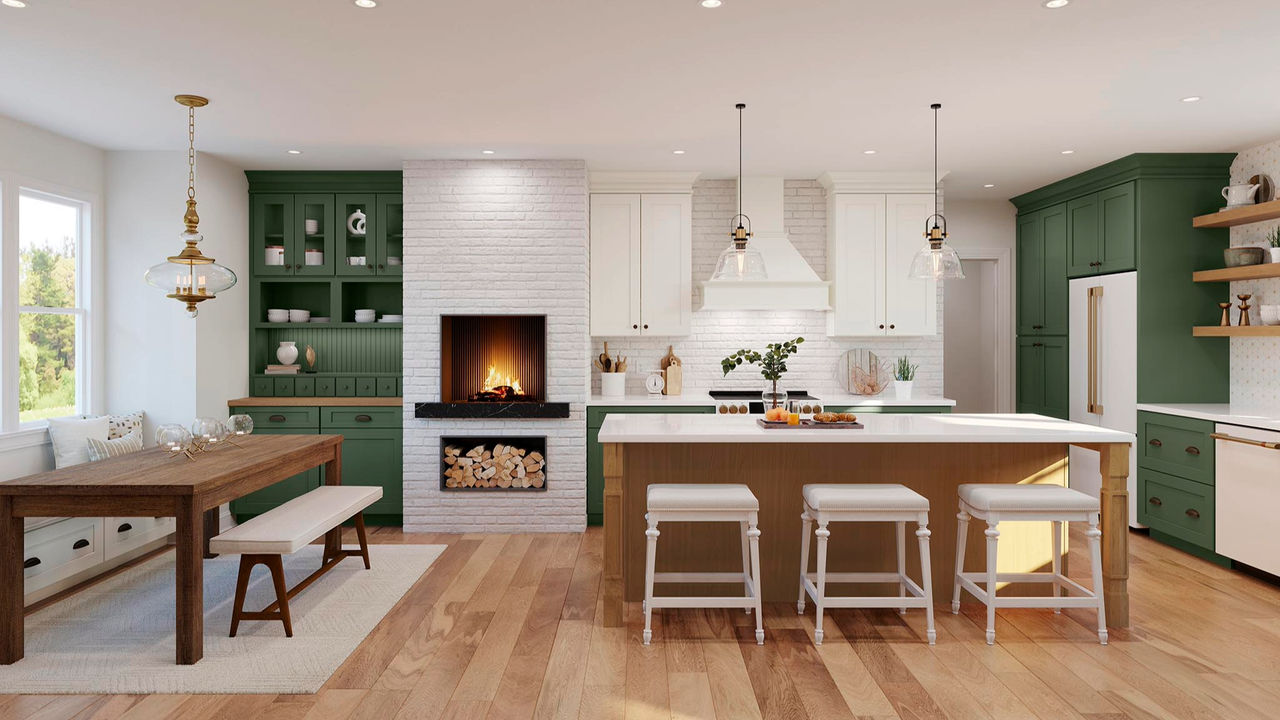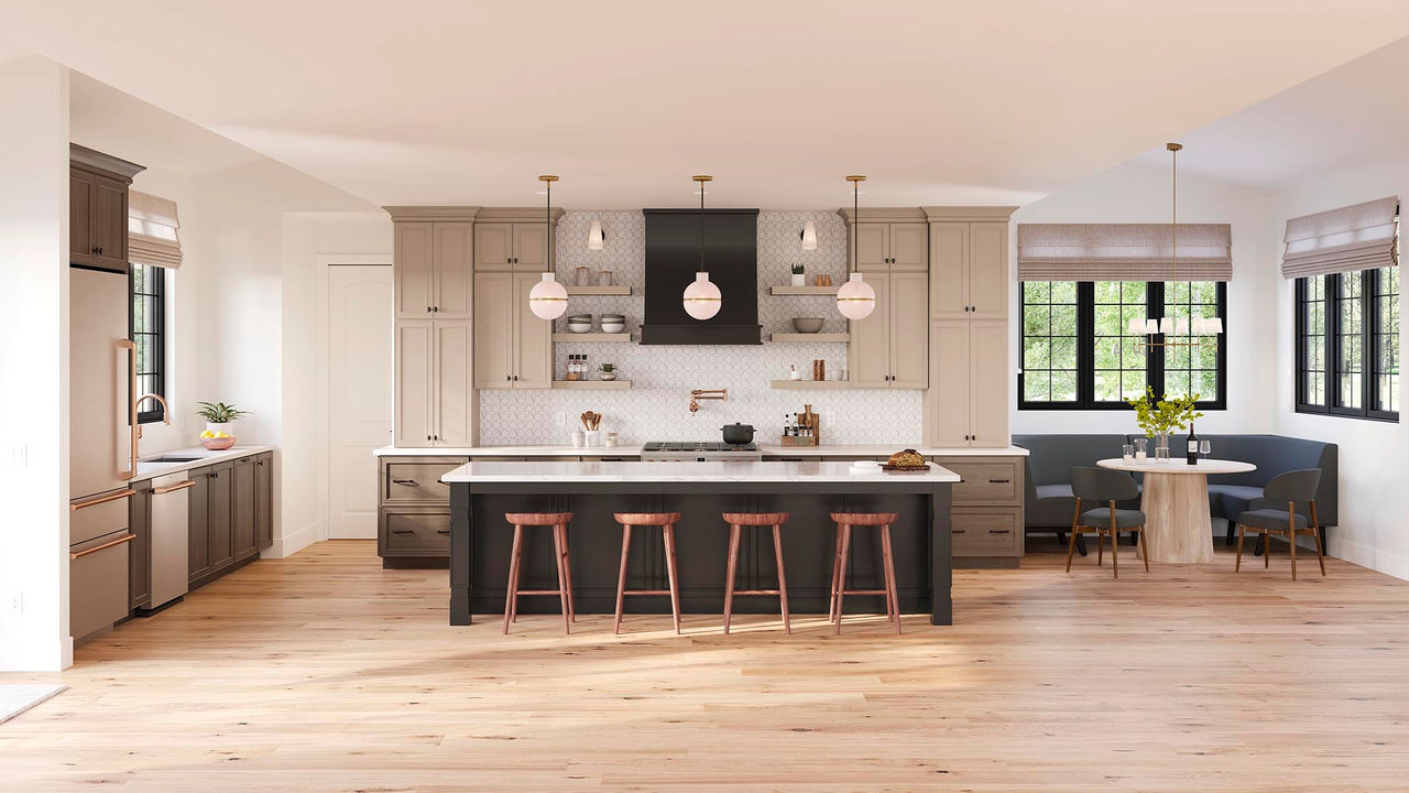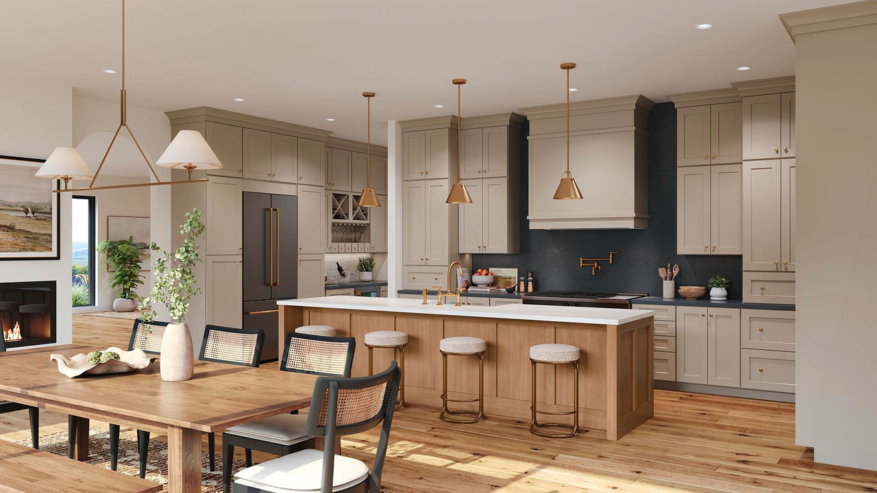 We're seeing a shift from two-tone kitchens to tri-tone kitchens. These combinations typically consist of a neutral finish, with a bold pop of color, and a wood-tone finish to ground the space.