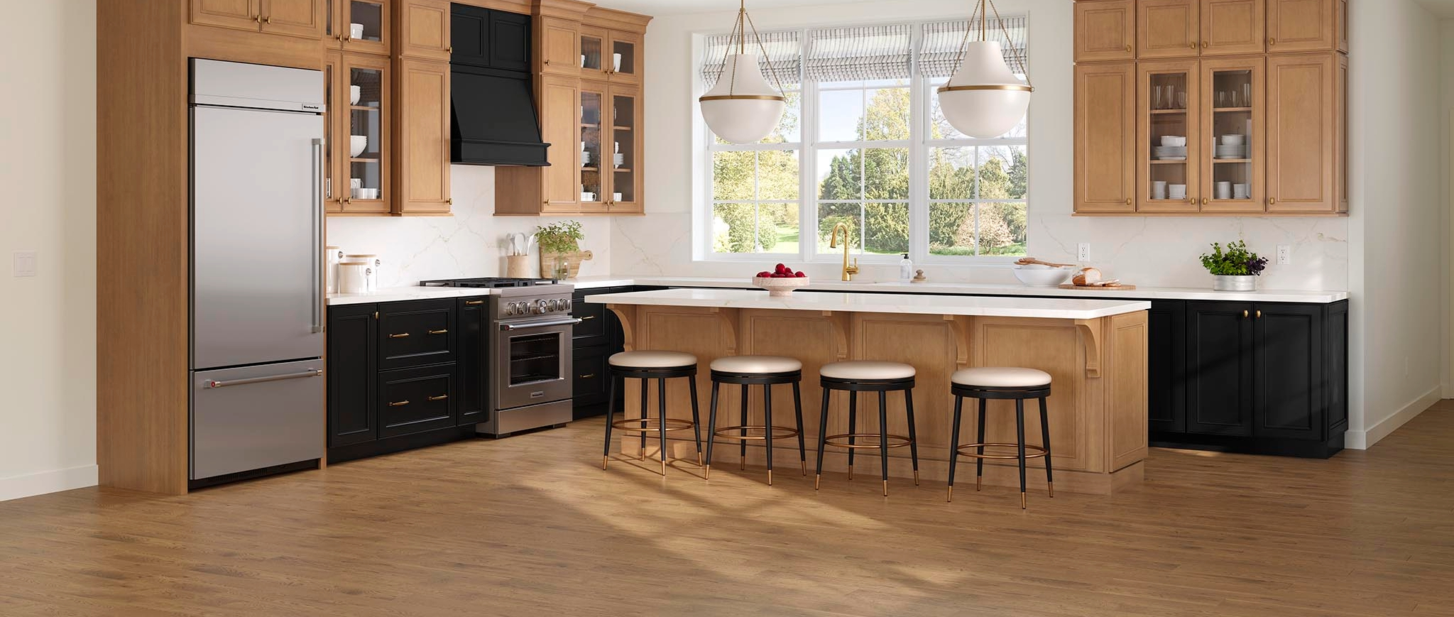 Small details. Big impact! Decorative accessories bring your look to life and complete the space. Drag the slider below to see how these corbels, moldings, glass doors, legs, and feet transform your space from ordinary to extraordinary.